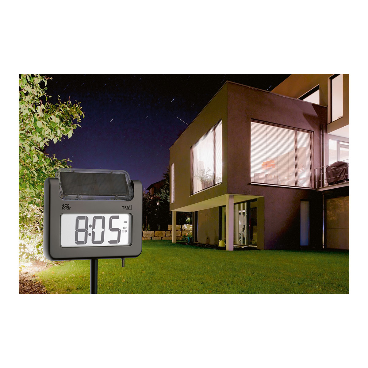 Digitales Gartenthermometer mit Solarbeleuchtung und Funkuhr