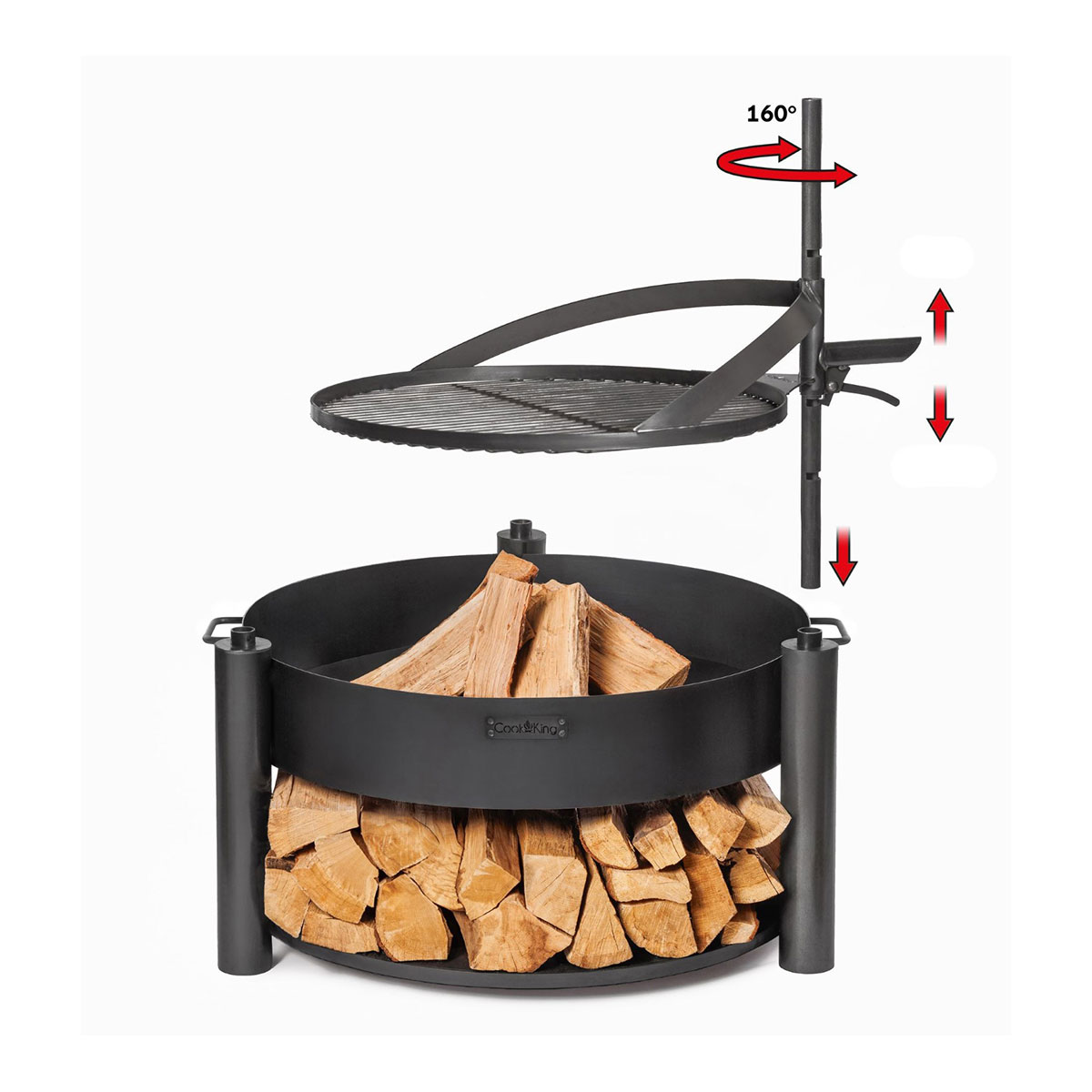 Die großzügige Feuerschale mit 80 cm Durchmesser schafft eine beeindruckende Feuerfläche, die Wärme spendet und für eine besondere Atmosphäre sorgt. Der stabile Grillrost mit 60 cm Durchmesser und der passende Mast verwandeln die Schale im Handumdrehen in eine flexible Grillstation. So lassen sich gemütliche Abende am Feuer ganz einfach mit entspanntem Grillen verbinden.
