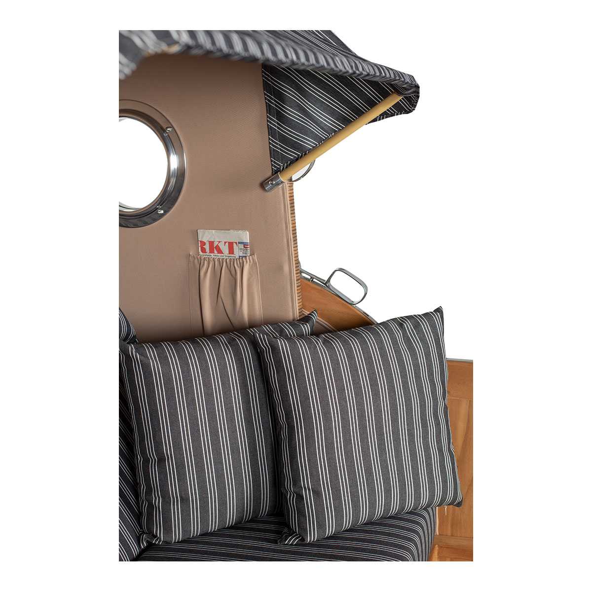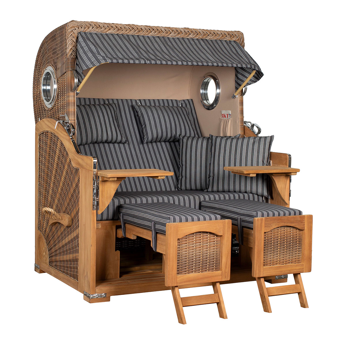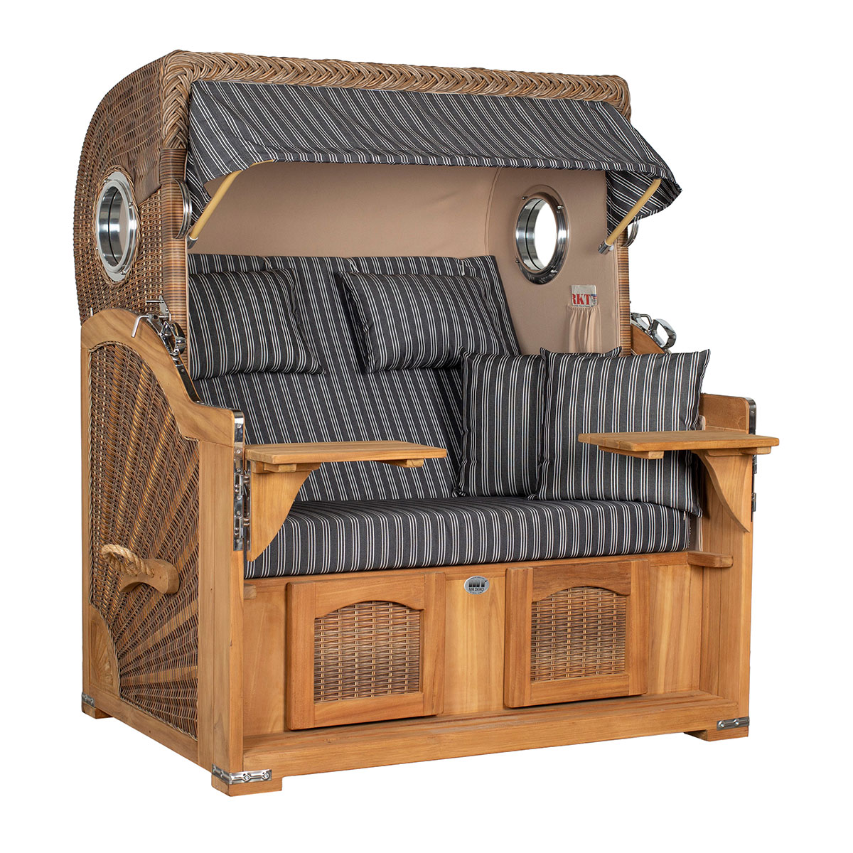 Original Produktbezeichnung: Strandkorb Düne Grande Bullauge Teak PE Banana Dessin 500