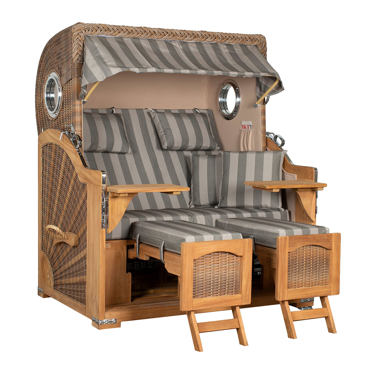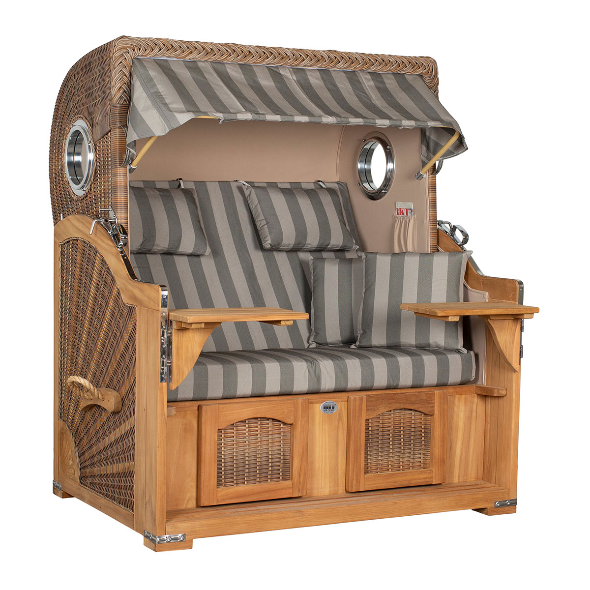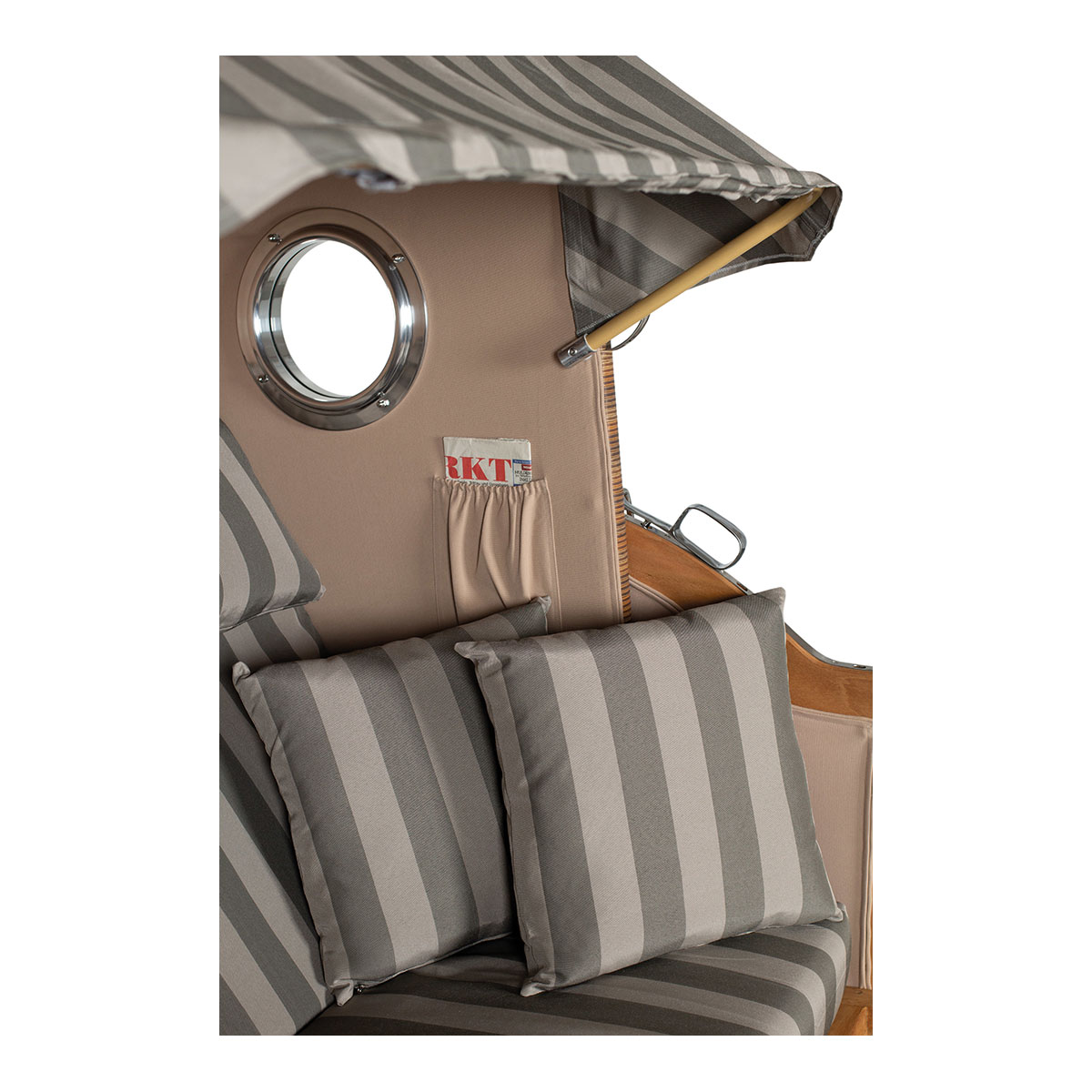 Original Produktbezeichnung: Strandkorb Düne Grande Bullauge Teak PE Banana Dessin 537