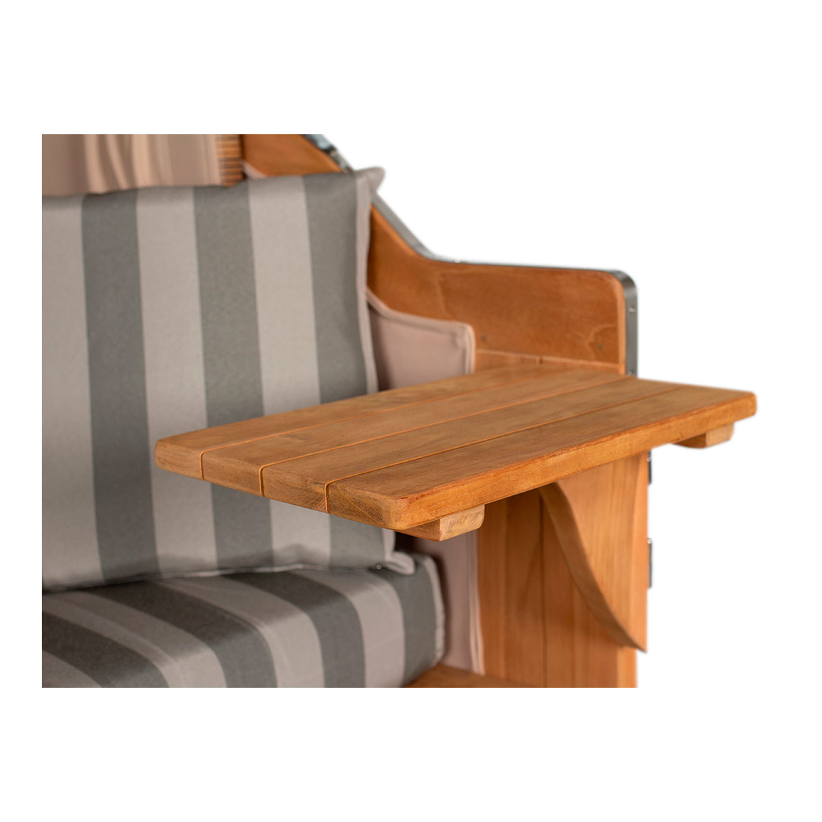 Exquisite Handwerkskunst - Der Strandkorb Düne Grande Bullauge Teak PE Banana bietet eine harmonische Kombination aus exquisiter Handwerkskunst und modernem Design. Hergestellt aus zertifiziertem Teak Vollholz, steht dieser Strandkorb für Langlebigkeit und eine ansprechende Ästhetik. Das Holz sorgt nicht nur für eine elegante Optik, sondern auch für eine hohe Robustheit, die auch widrigen Wetterbedingungen standhält. Dank der speziellen Oberflächenbehandlung bleibt das Holz lange Zeit in einwandfreiem Zustand und verliert nicht an Charme und Eleganz.