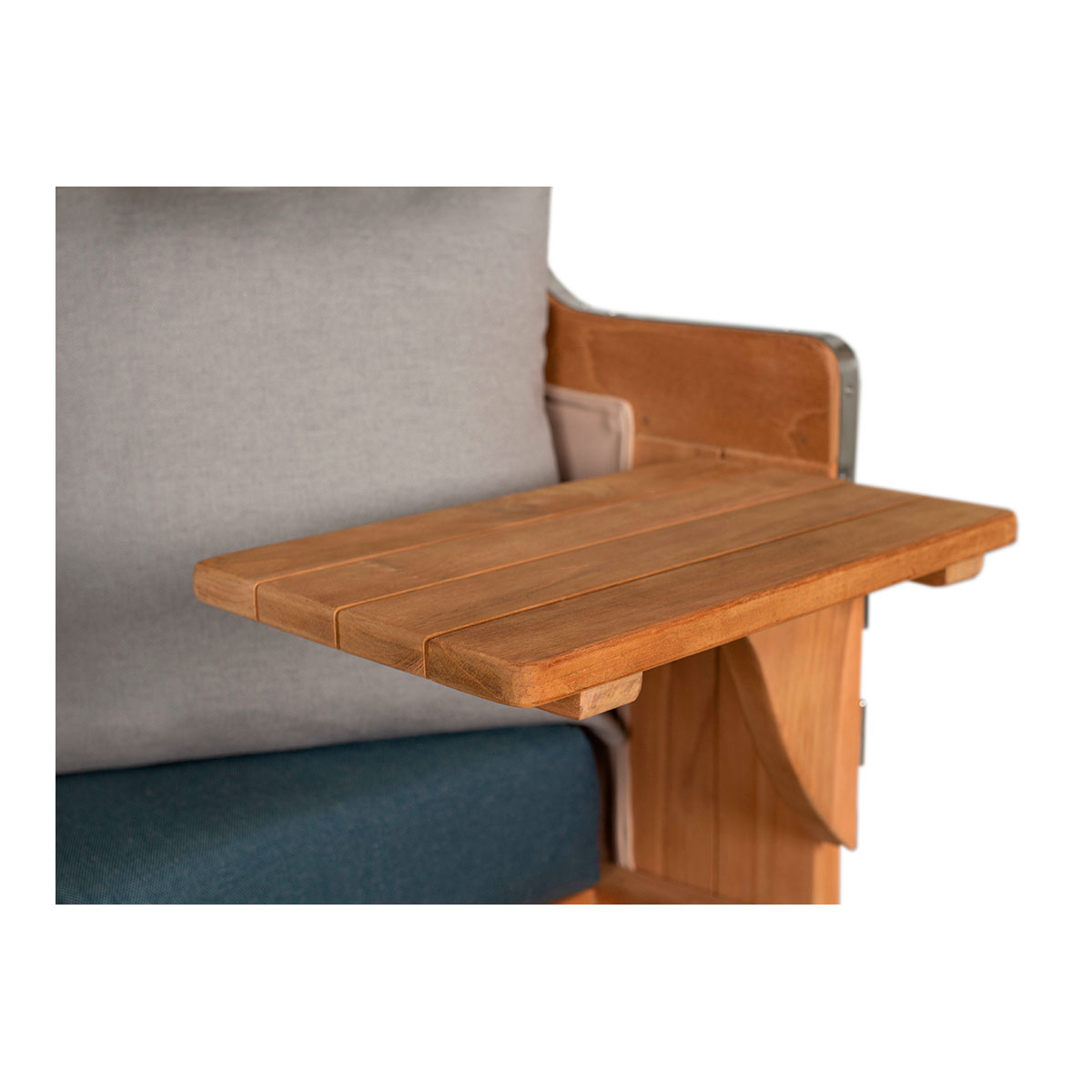 Exquisite Handwerkskunst - Der Strandkorb Düne Grande Bullauge Teak PE Banana bietet eine harmonische Kombination aus exquisiter Handwerkskunst und modernem Design. Hergestellt aus zertifiziertem Teak Vollholz, steht dieser Strandkorb für Langlebigkeit und eine ansprechende Ästhetik. Das Holz sorgt nicht nur für eine elegante Optik, sondern auch für eine hohe Robustheit, die auch widrigen Wetterbedingungen standhält. Dank der speziellen Oberflächenbehandlung bleibt das Holz lange Zeit in einwandfreiem Zustand und verliert nicht an Charme und Eleganz.