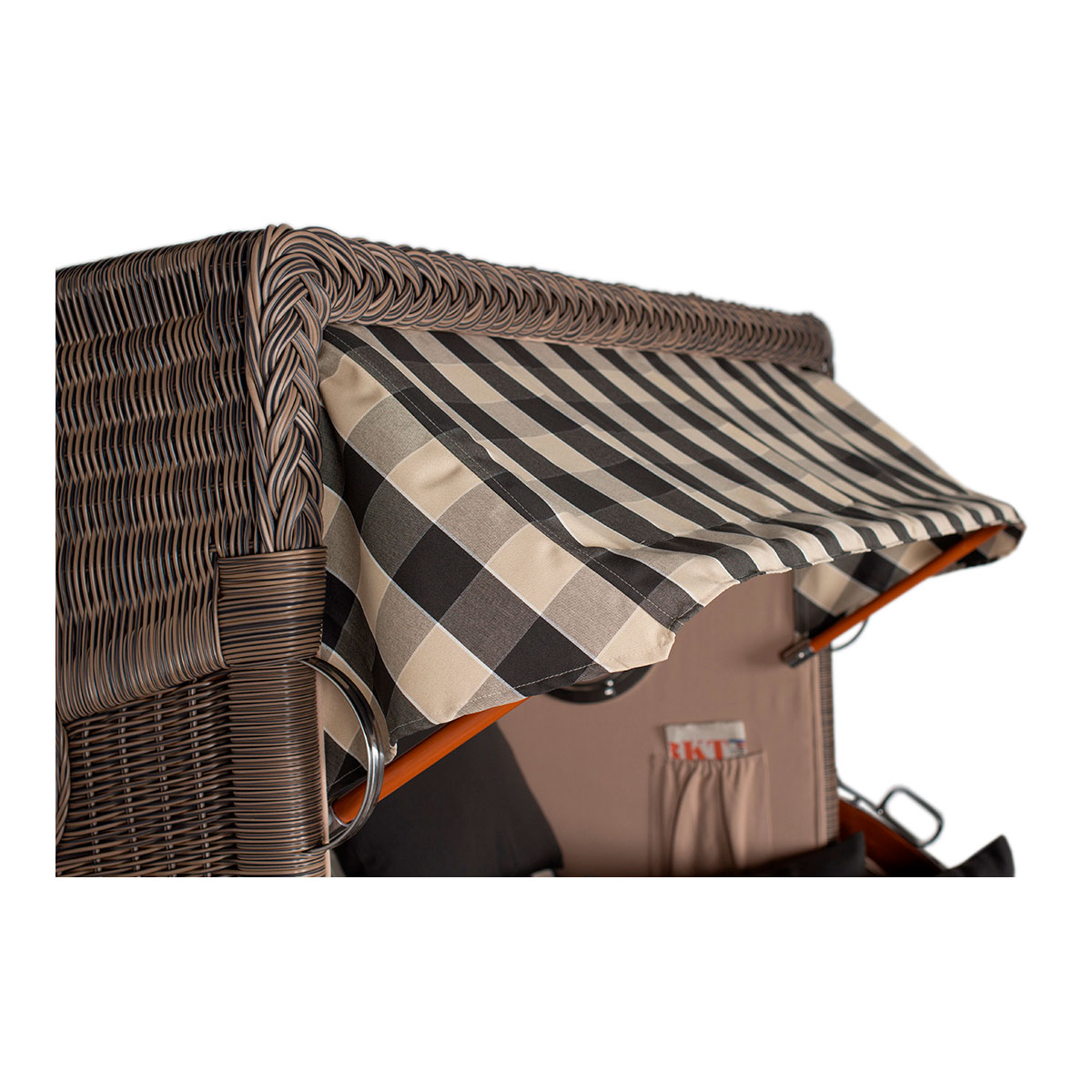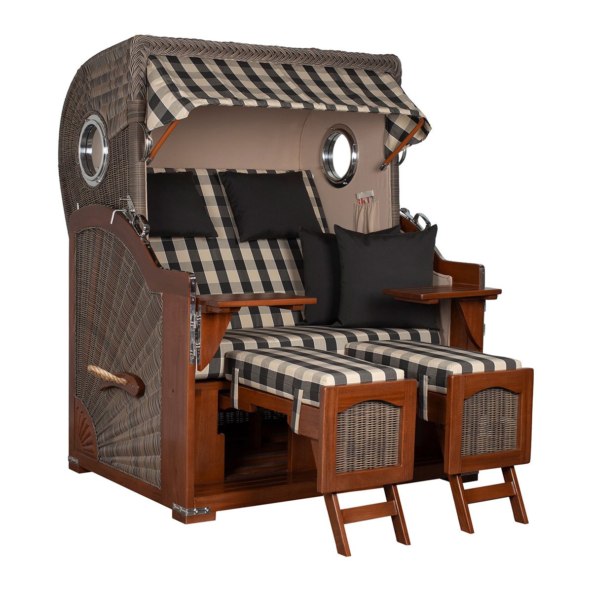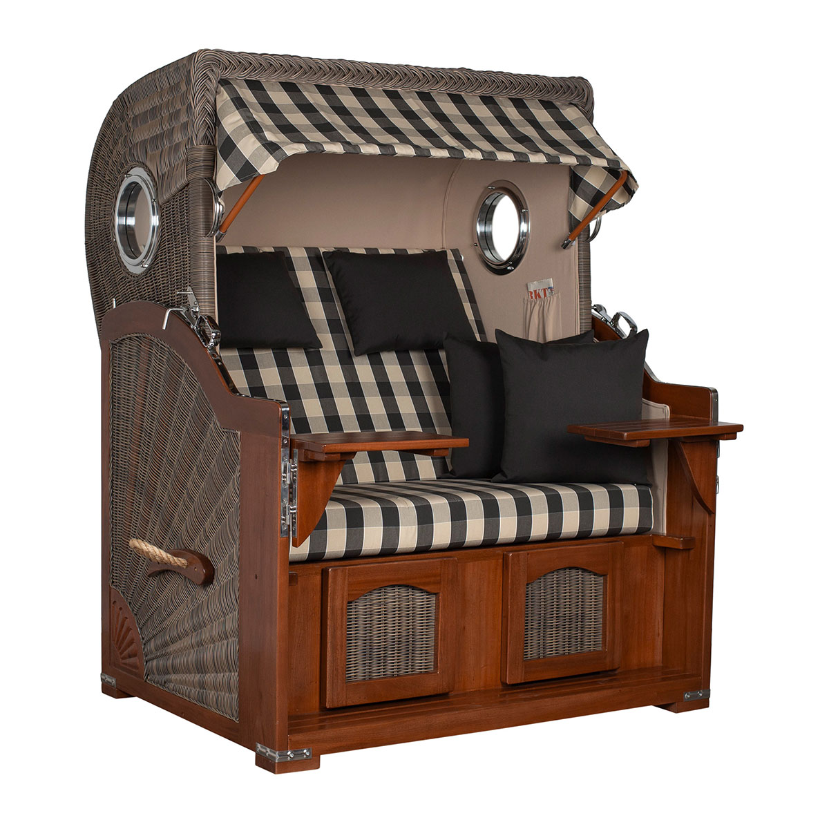 Original Produktbezeichnung: Strandkorb Düne Bullauge Mahagoni PE Grey Dessin 505