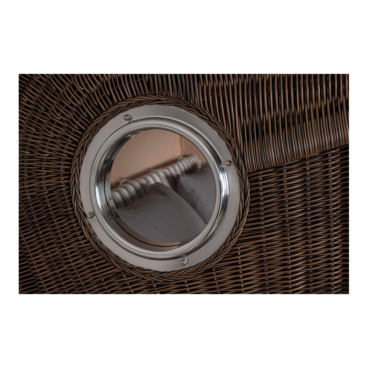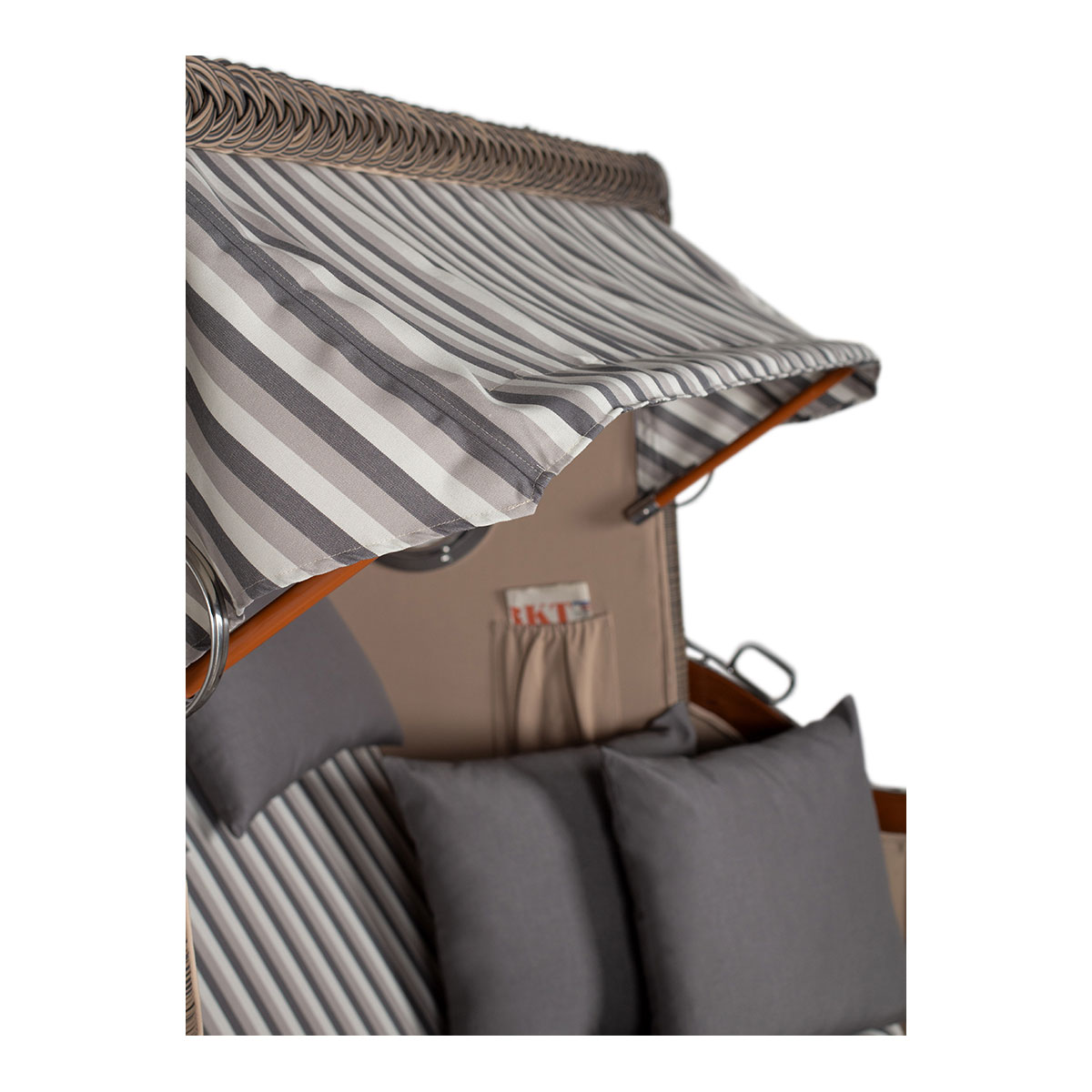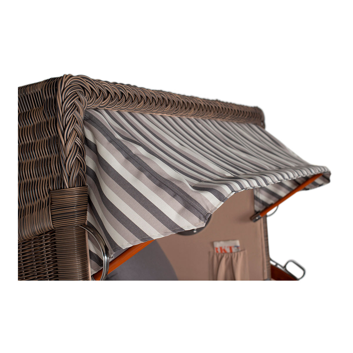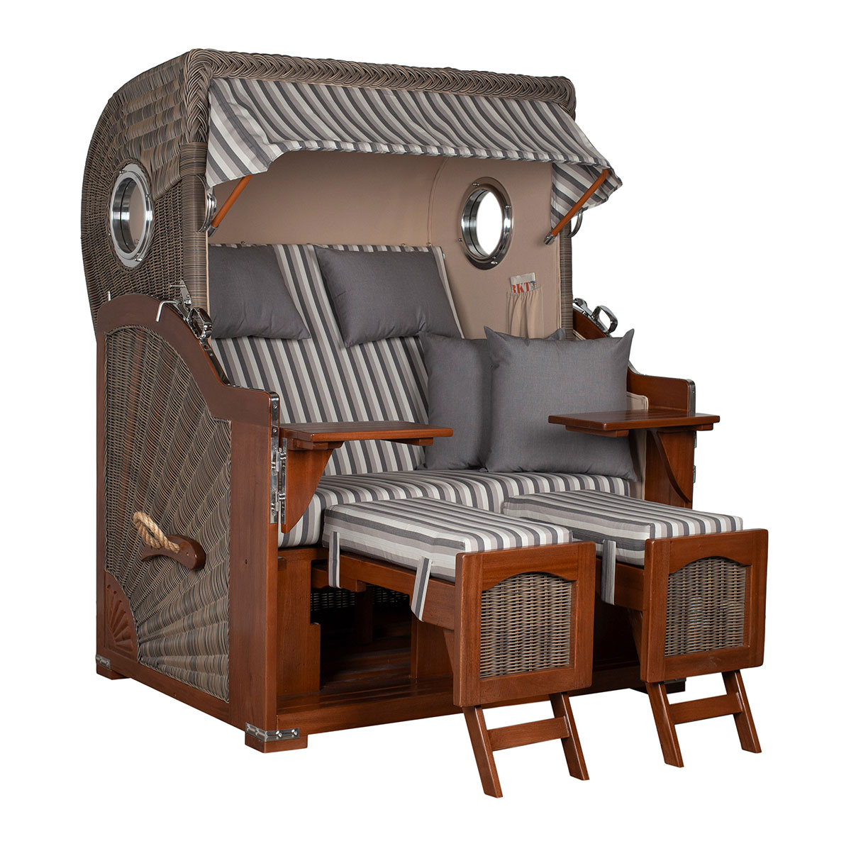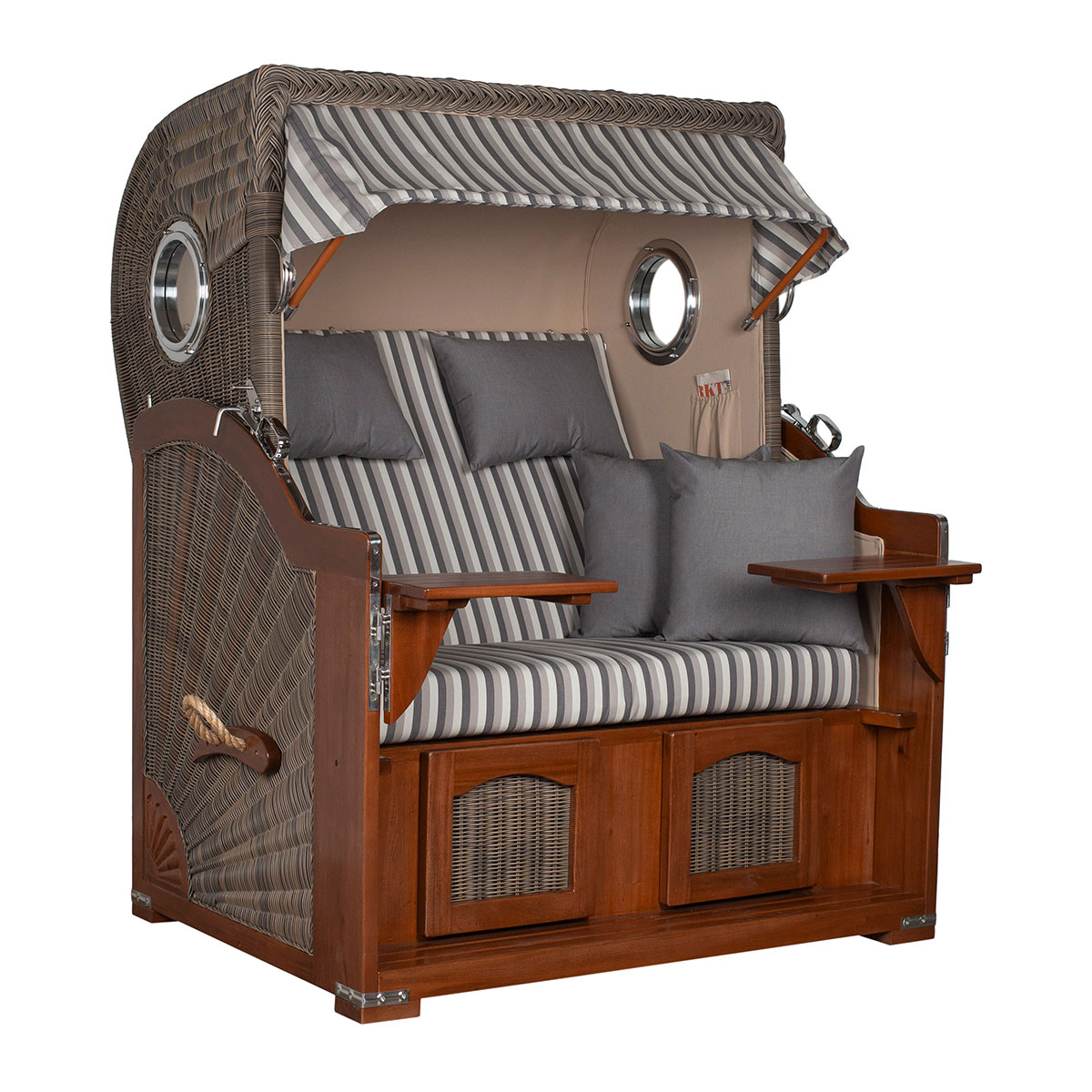 Original Produktbezeichnung: Strandkorb Düne Bullauge Mahagoni PE Grey Dessin 545