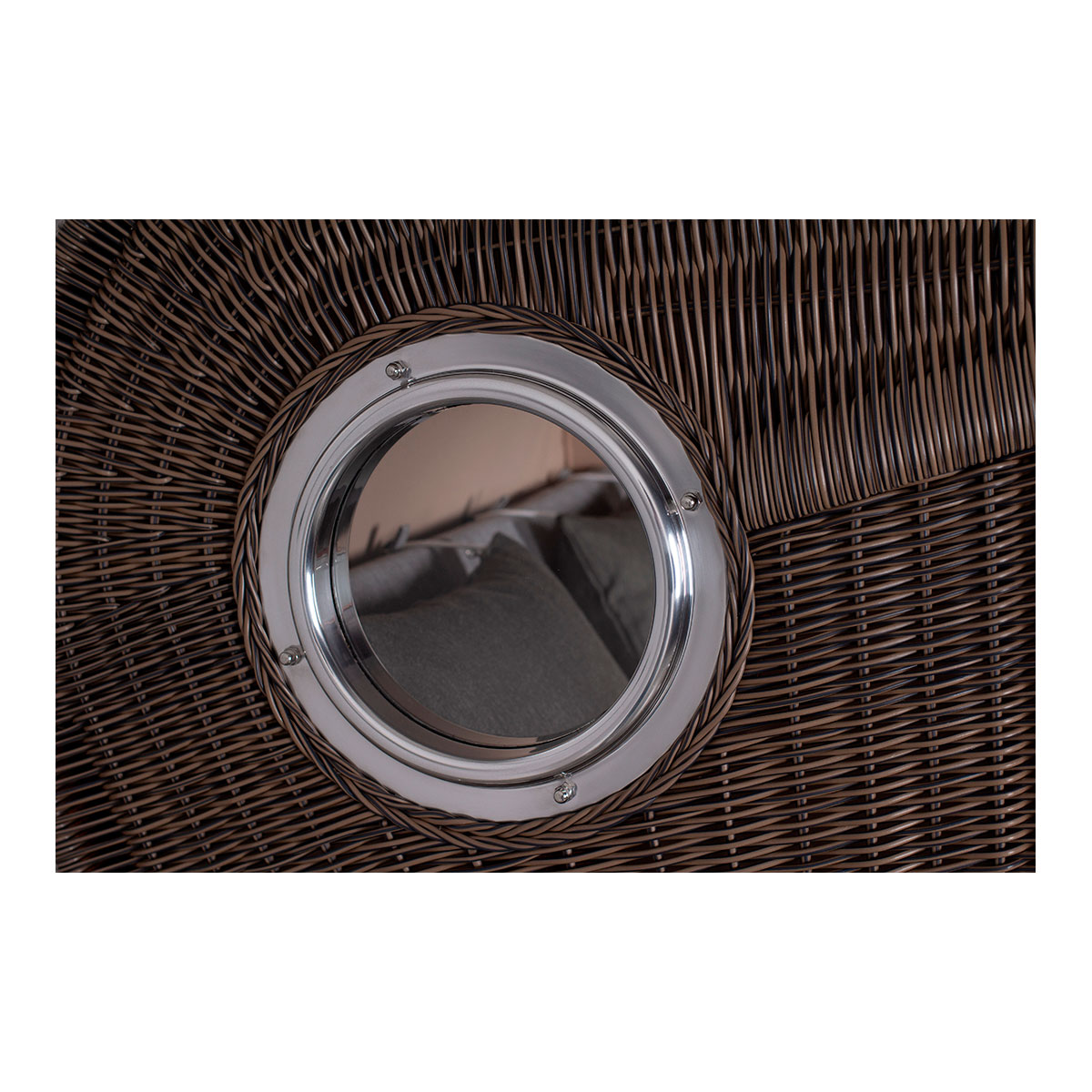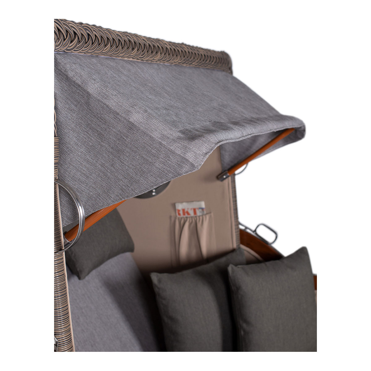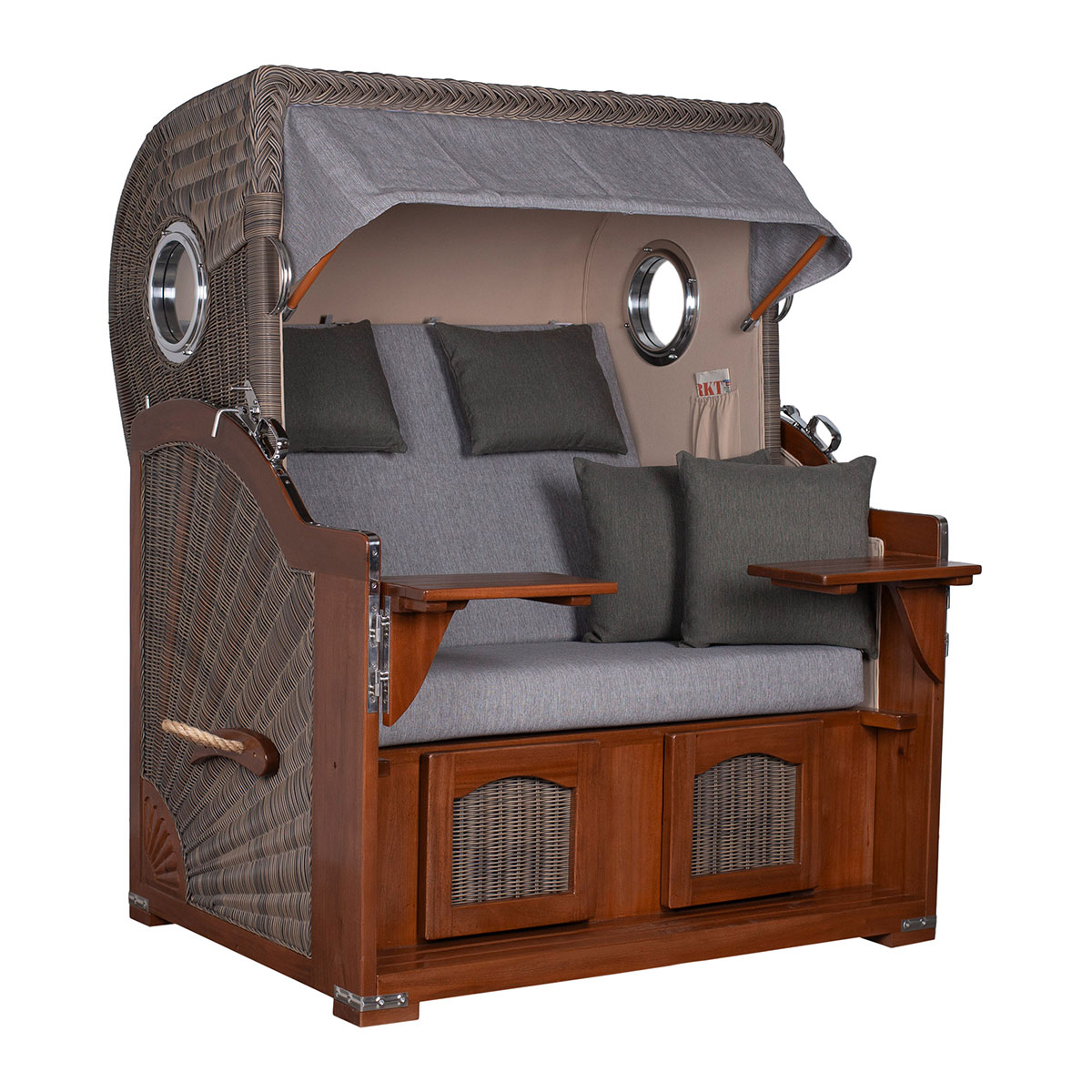 Original Produktbezeichnung: Strandkorb Düne Bullauge Mahagoni PE Grey Dessin 570