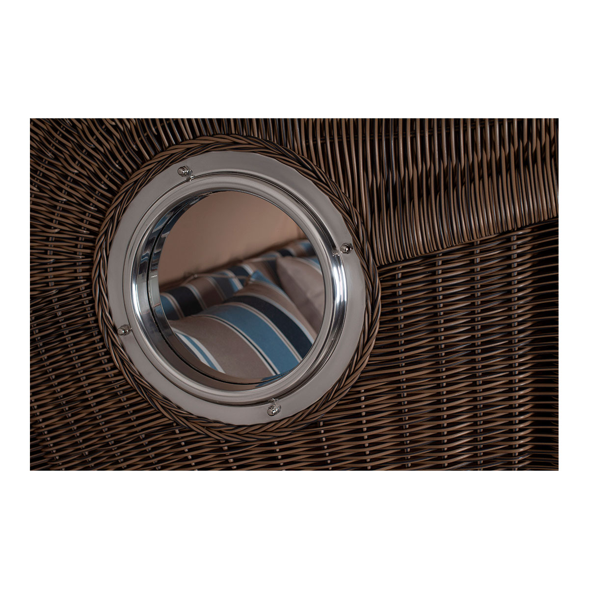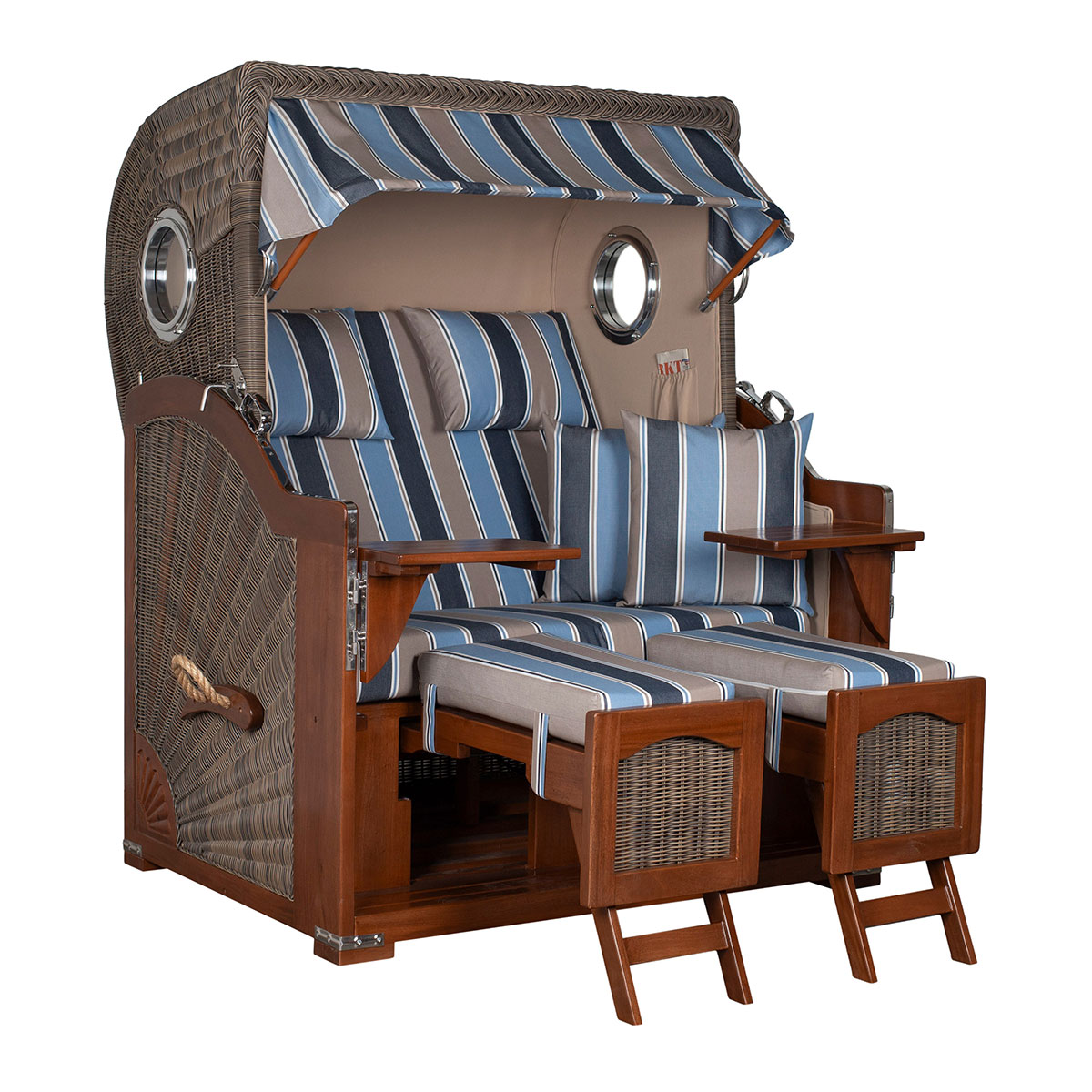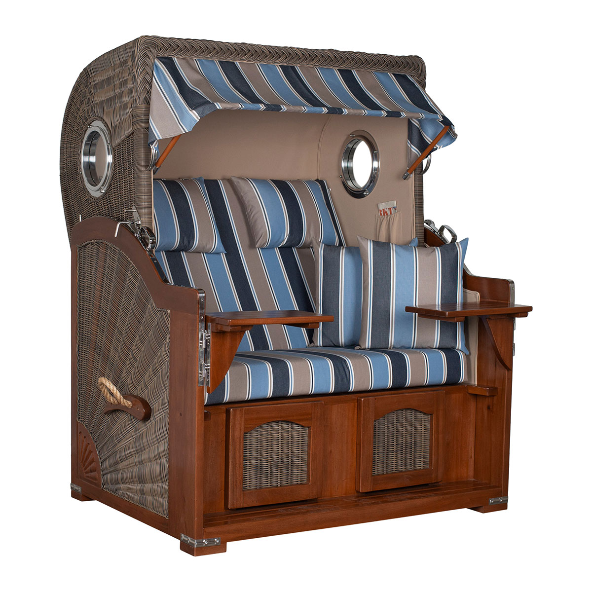 Original Produktbezeichnung: Strandkorb Düne Bullauge Mahagoni PE Grey Dessin 580