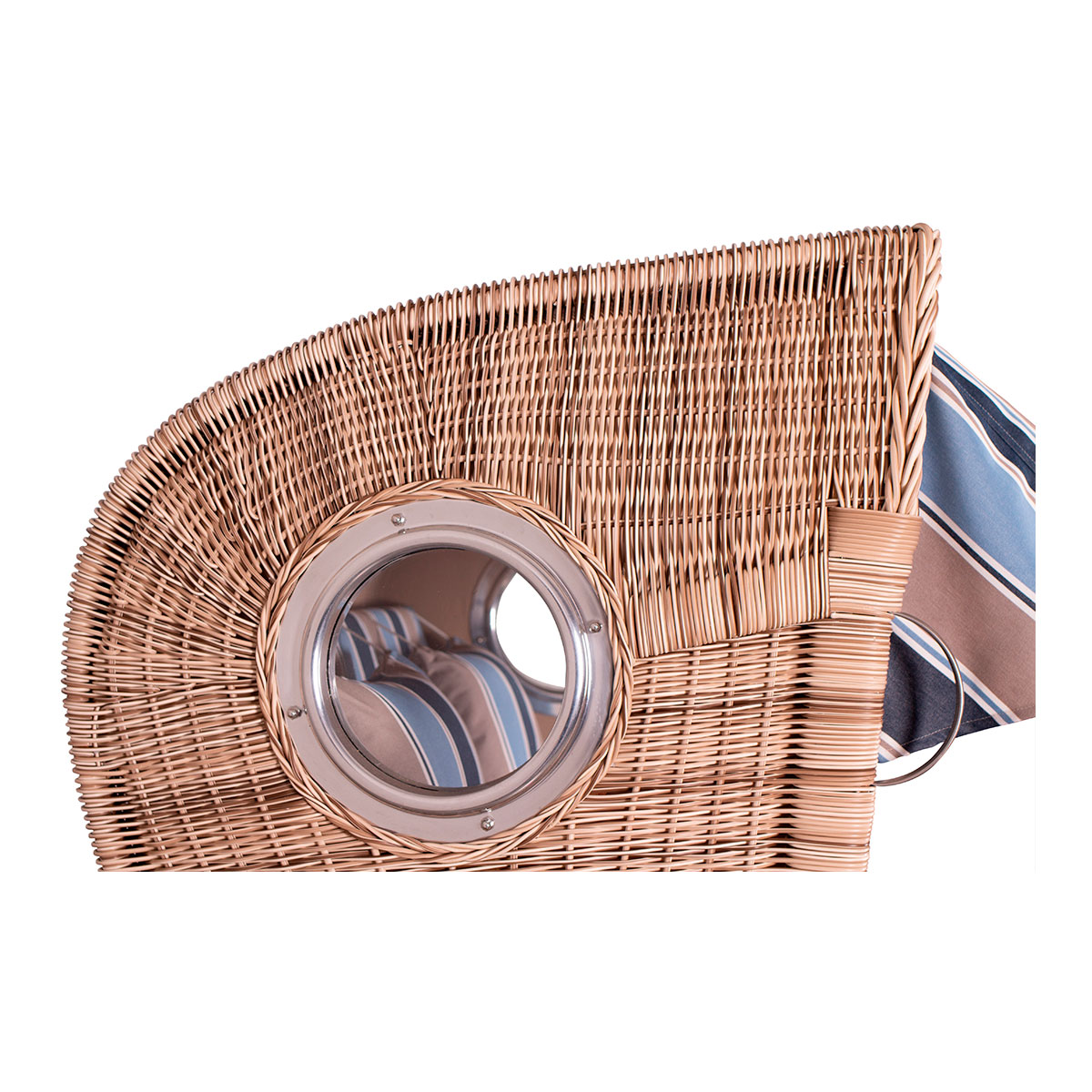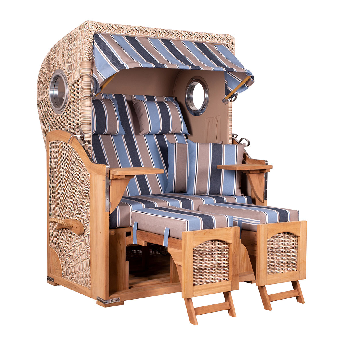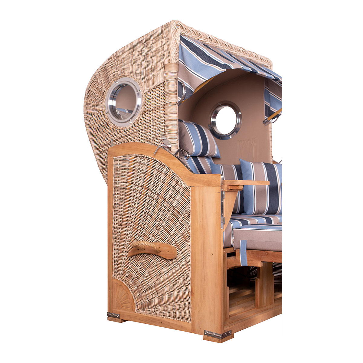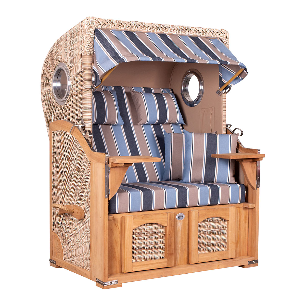 Der Strandkorb Düne Teak PE shell mit Bullaugen - gemütlicher Zweisitzer mit exklusiver Ausstrahlung