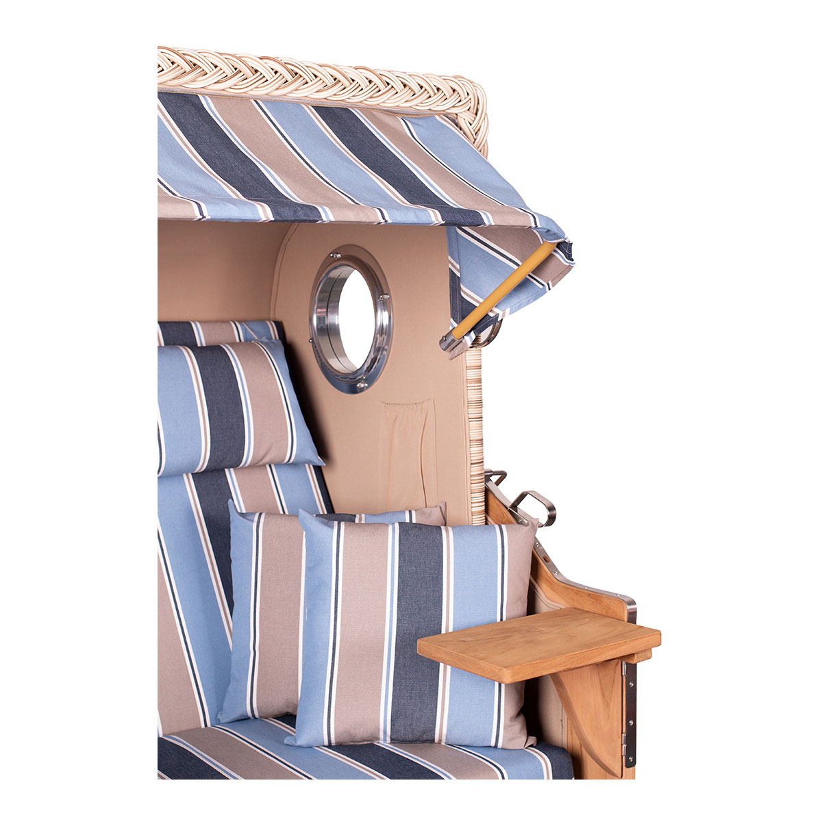 • Zweisitzer-Strandkorb mit Vollieger-Funktion für verschiedene Sitz- und Liegepositionen